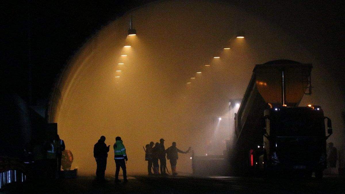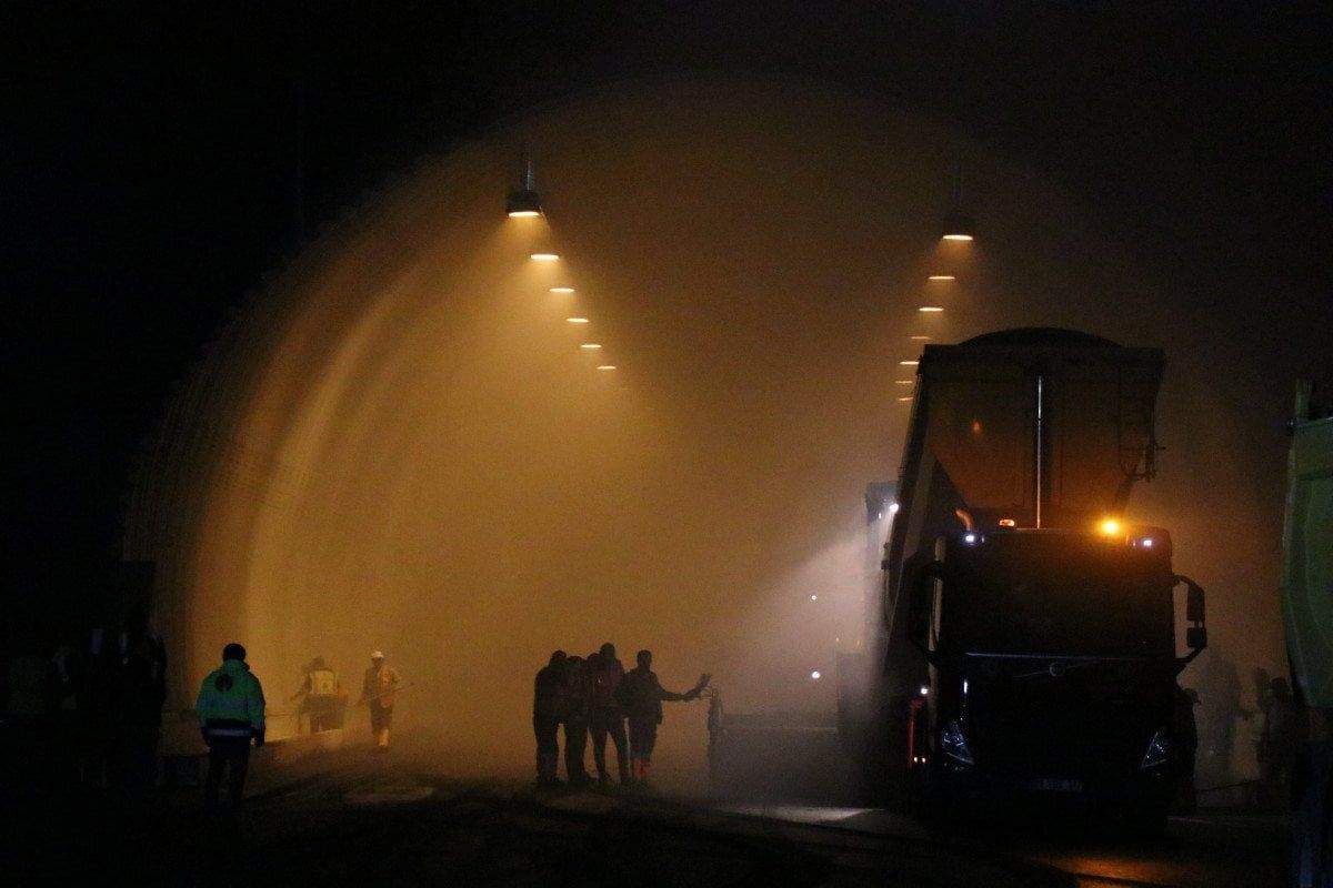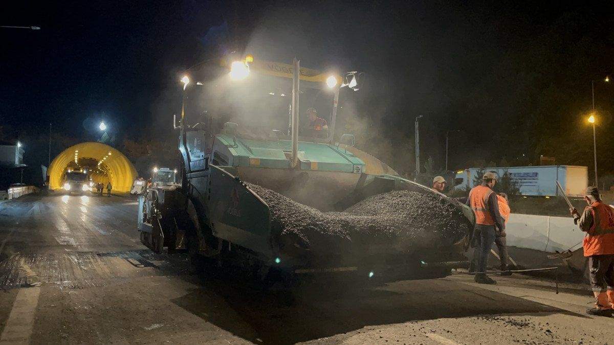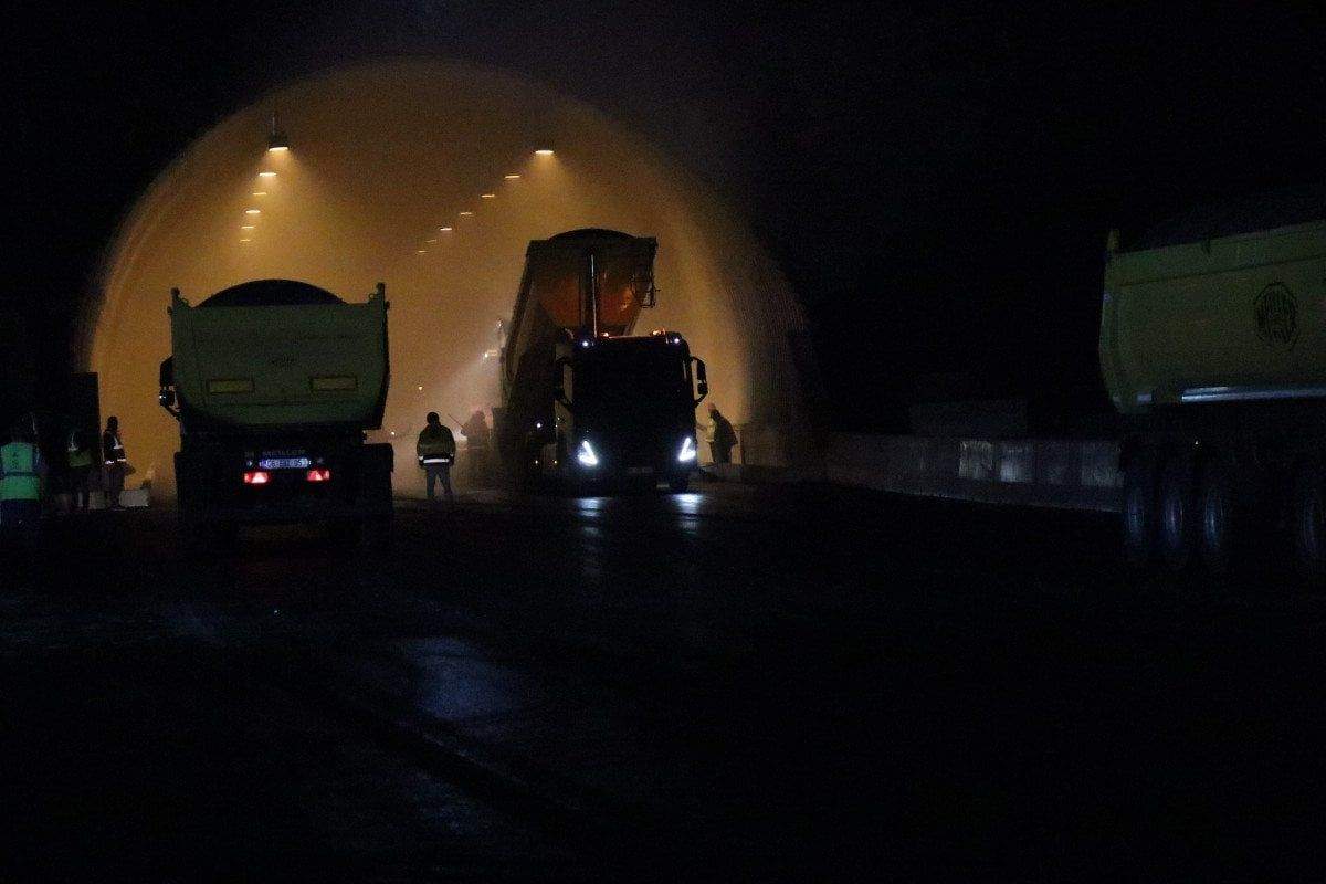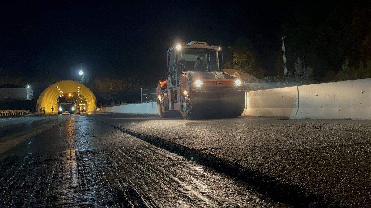 Tünel portallarının uzatma çalışmalarını tamamlayan ekipler, asfalt serimi yaptı.