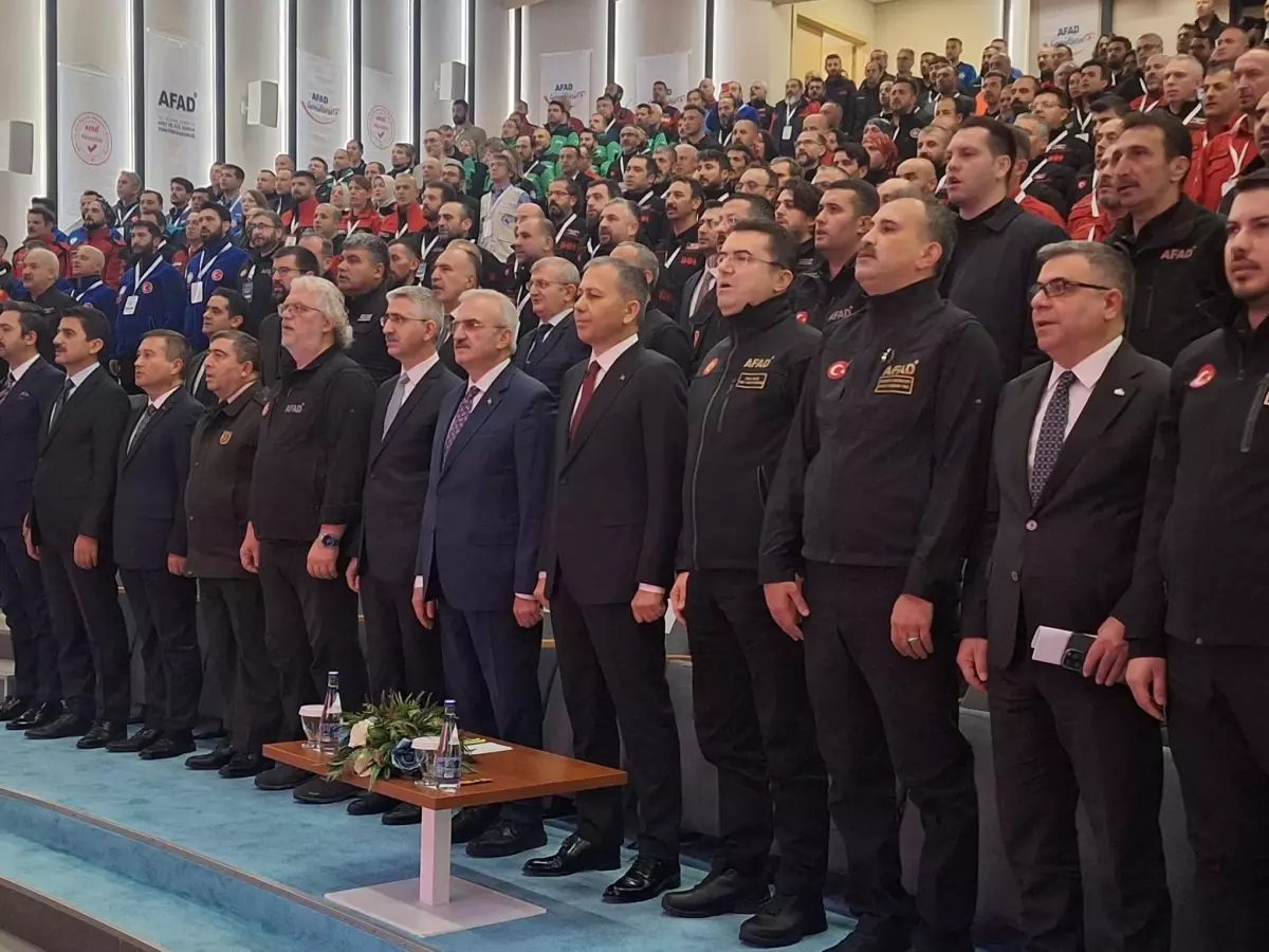 Zor günlerde gösterilen azim ve cesaretin daima gururla anılacağını vurgulayan Yerlikaya, “Cumhurbaşkanımız Sayın Recep Tayyip Erdoğan’ın liderliğinde Türkiye, afet yönetiminde ve dayanışma ruhunun kurumsallaşmasında büyük adımlar attı. 2009 yılında afet ve acil durumlara ilişkin tek yetkili kurum olan AFAD’ın kurulması; kriz yönetimiyle birlikte risk yönetimi anlayışına geçilmesi, afetlere hazırlıkta bizim için milat oldu. Türkiye Afet Müdahale Planı çerçevesinde, AFAD Akreditasyon Sistemi ile sivil toplum kuruluşları, kamu ve özel sektör kuruluşlarıyla gönüllü bireylerin afet sahasında etkin görev almasını teşvik ettik. Bugün arma takacak ve akreditasyon sertifikası alacak; 257 ekip ve 7 bin 972 üye ile toplamda 300 ekip ve 9 bin 101 üyeye ulaştık. Akreditasyon sistemimizi başlangıçta yalnızca kentsel arama kurtarma üzerine kurmuşken bugün akreditasyon sistemimizi Aile ve Sosyal Hizmetler Bakanlığımız ve Kızılay’ımızın da katkılarıyla beslenme ve psikososyal destek gibi 6 farklı alana yayarak güçlendirdik. İnceleme süreci devam eden 125 ekip ve 4 bin 32 kişilik yeni başvuruların da sisteme dahil edilmesiyle gücümüzü daha da artırıyoruz. 6 Şubat öncesi 623 bin olan AFAD gönüllü sayımız, bugün 1 milyon 545 bine yükseldi. Yine AFAD Başkanlığımız tarafından afetlere karşı hazırlıklı olunması amacıyla 1 milyon 800 bini aşkın aileye afete hazır aile eğitimleri, 3 milyonu aşkın öğrenciye okullarda afet farkındalık eğitimi verildi” dedi.