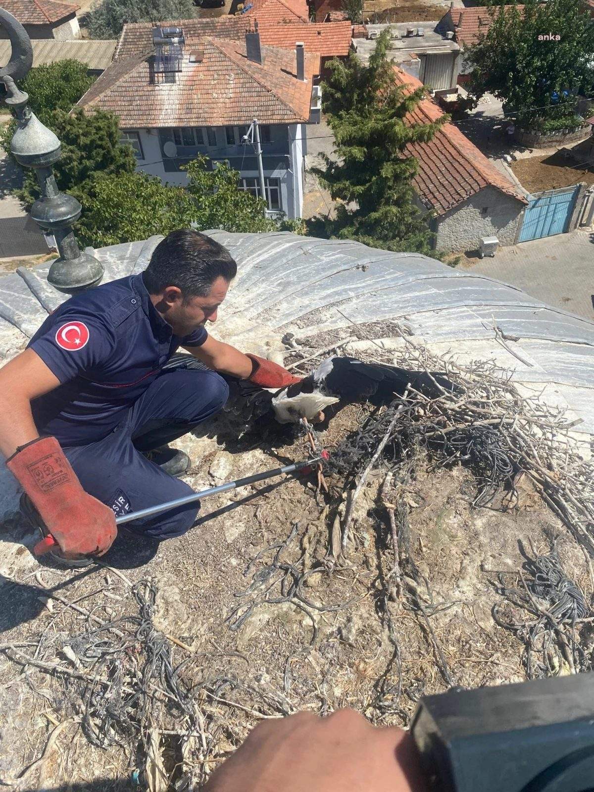 (BALIKESİR)- Balıkesir Büyükşehir Belediyesi ekipleri, Karesi ilçesi Kavaklı Mahallesi Camisi’nin kubbesinde yuvasında bacağına ip dolanarak yaralanan ve uçamayan leyleği hızlı ve titiz müdahalesi ile kurtardı. Yaralı leylek, yapılan ilk müdahalenin ardından Milli Parklar ekibine teslim edildi.