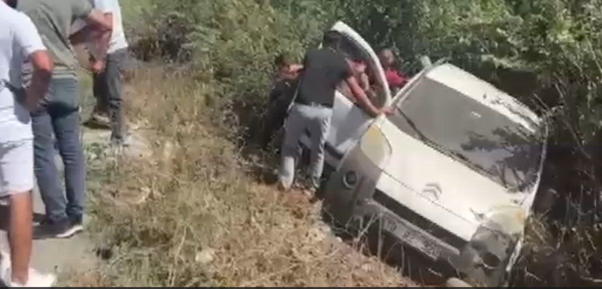 Çarpmanın etkisiyle savrulan hafif ticari araç şarampole devrildi. Araç sürücüsü ve Büşra Demir (28) araç içinde sıkıştı.