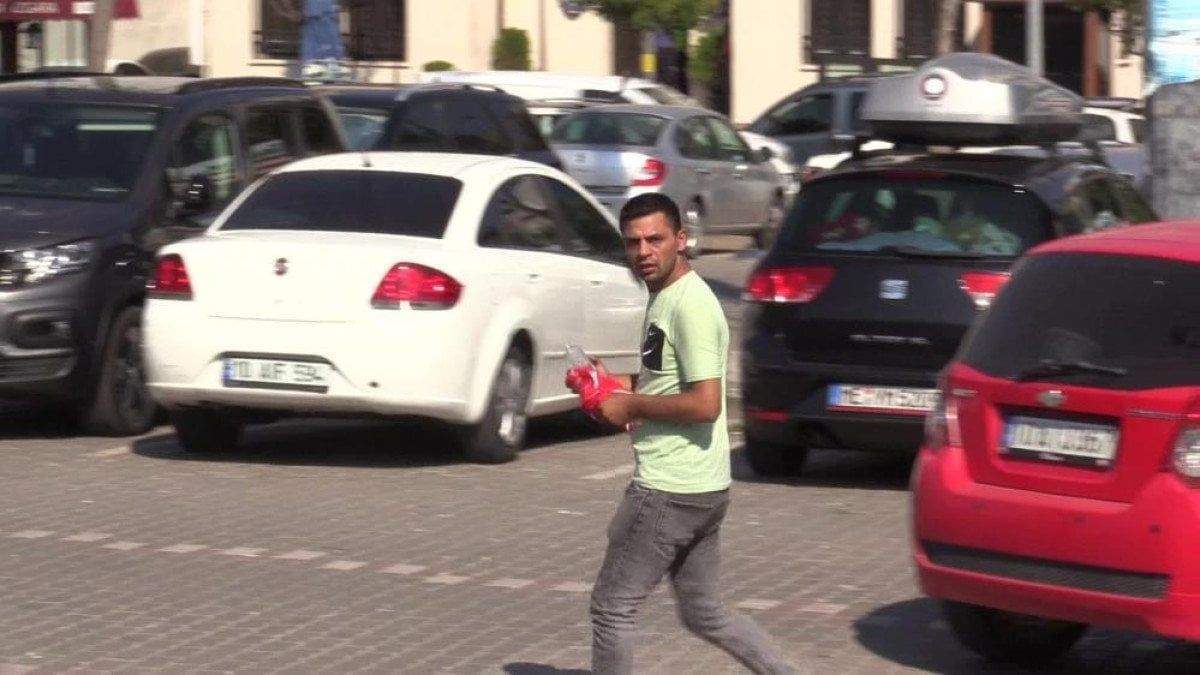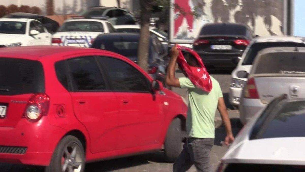 Yine görünen şahıslar, çekim yapıldığını fark edince üzerlerindeki Türk bayrağı motifli tülbenti çıkarıp, arkasına bakmadan gözden uzaklaştı.