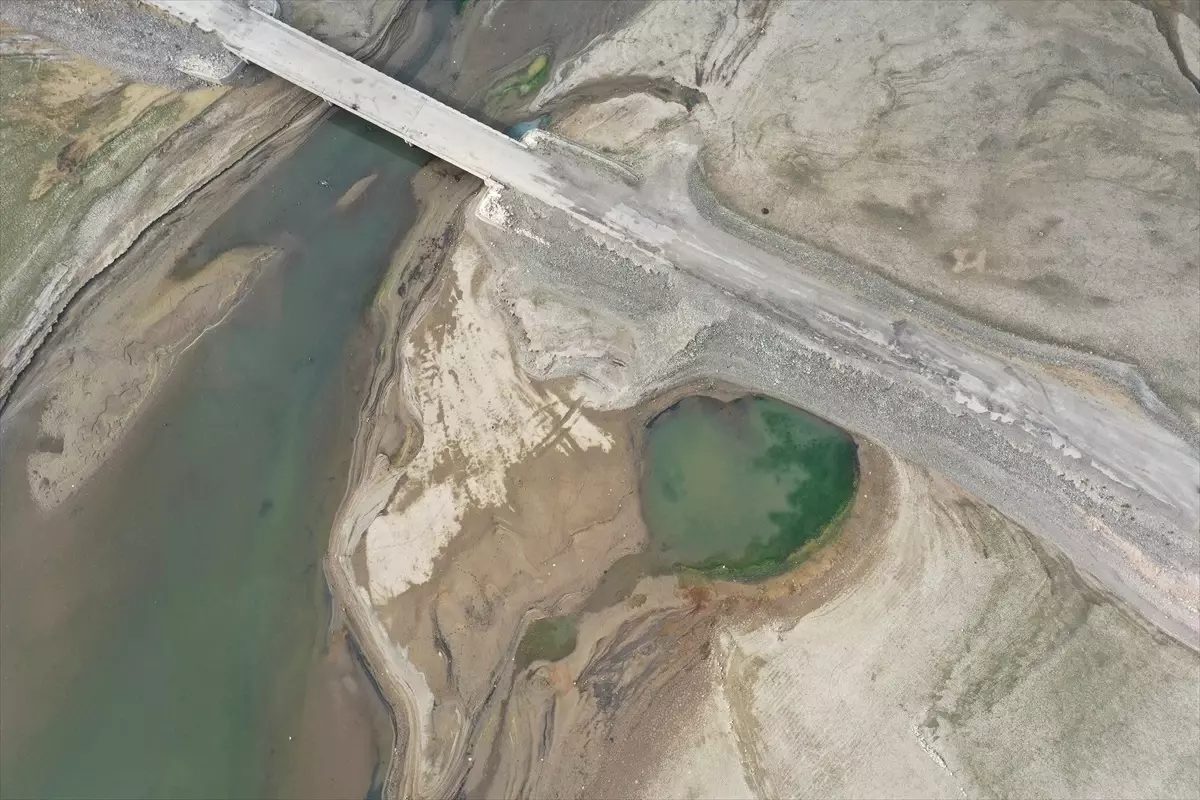 Bir yıl önce de yüzde 14 seviyelerine gerileyen barajın su seviyesinin bugünlerde yüzde 12,85’e kadar düşmesiyle zeminde yer yer oluşan çatlaklar, toprağın üzerinde kalan kayıklar, geniş alanlar arasında ince ip gibi akan su, kuraklık uyarısını gözler önüne serdi. Barajın son durumu, AA ekibince dronla görüntülendi.