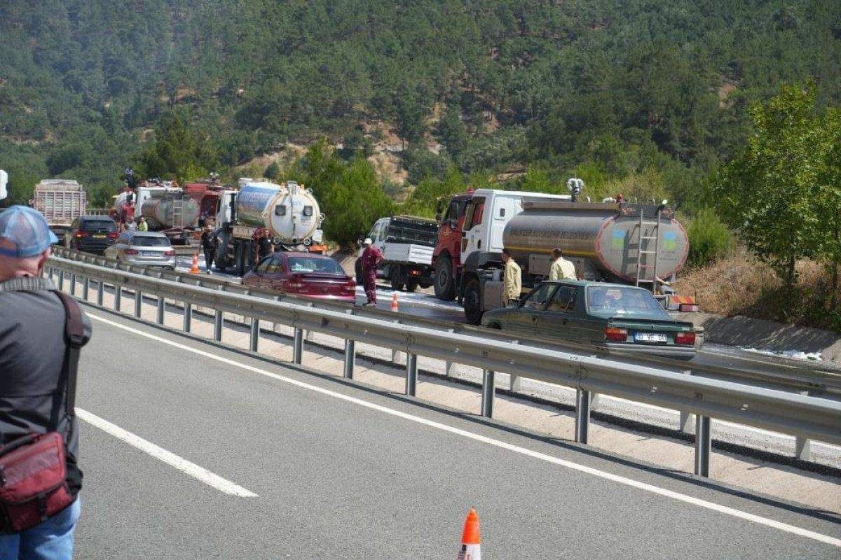 14 yolcunun olduğu minibüsten dumanlar yükseldiğini fark eden sürücü, yolcuları indirip aracı yolun kenarına çekti.