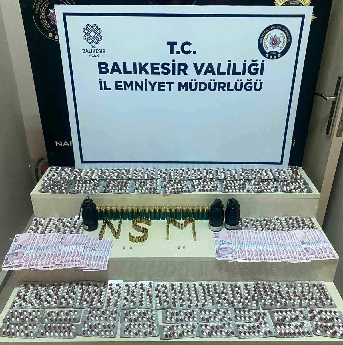 Balıkesir'in Bandırma ilçesinde gerçekleştirilen uyuşturucu operasyonunda 2 kişi gözaltına alınırken çok sayıda suç madde ele geçirildi. Operasyonda sentetik haplar, exctacy haplar, tabanca fişekleri, av tüfeği kartuşları, gaz bombaları ve para ele geçirildi.