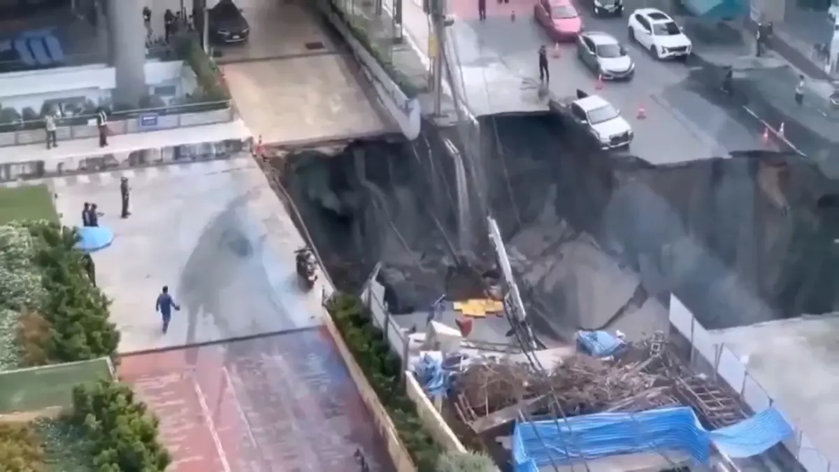 Tayland'ın Bangkok şehrinde yol çökmesi sonucu 50 metre derinliğinde çukur oluştu, tahliyeler yapılıyor.
