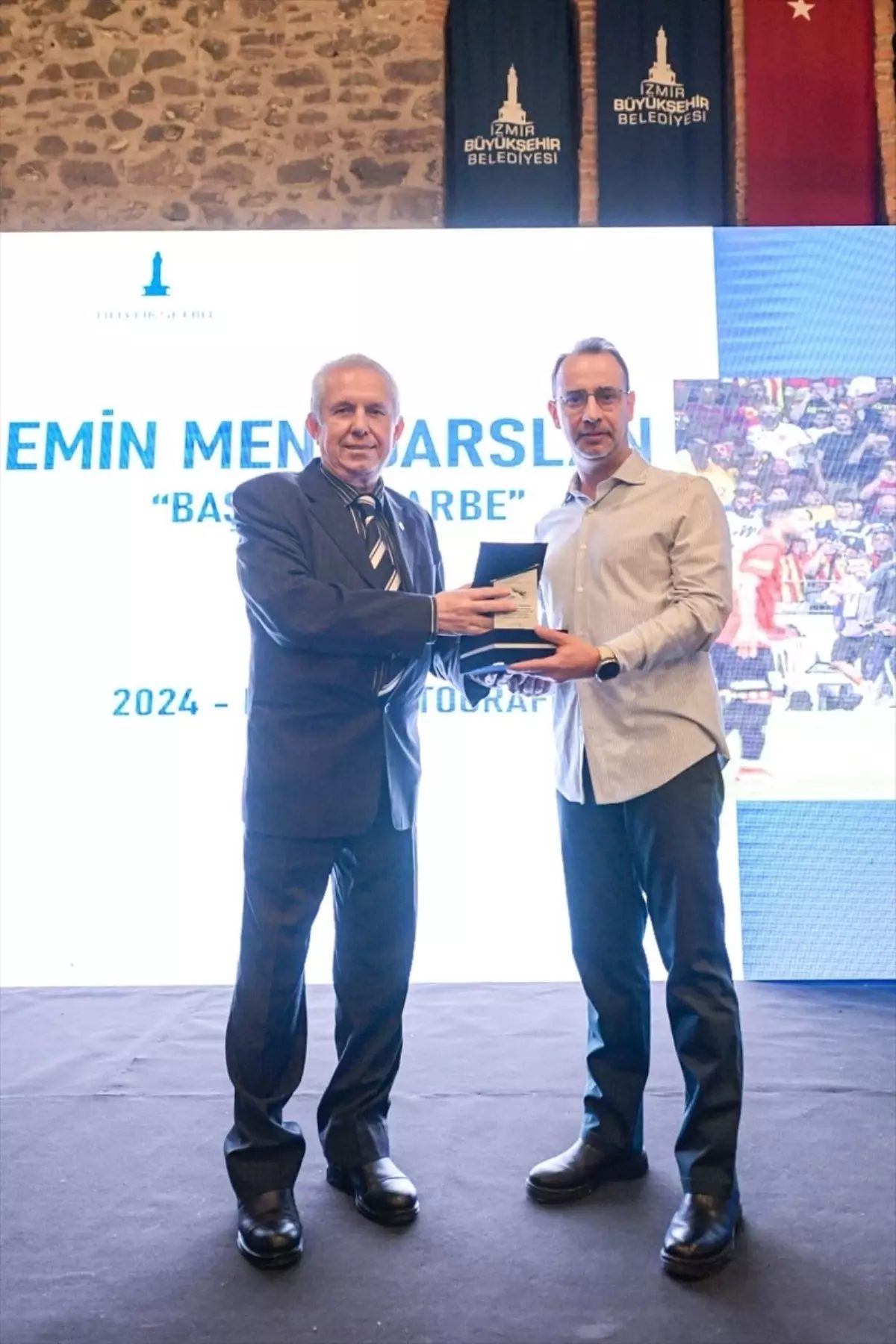 Konuşmaların ardından ödüller sahiplerini buldu. “Haber Fotoğrafı” dalında birinci olan Anadolu Ajansı foto muhabiri Mehmet Emin Mengüarslan ödülünü Türkiye Foto Muhabirleri Derneği Başkan Yardımcısı ve Ege Bölgesi Temsilcisi Şükrü Akın’dan aldı.