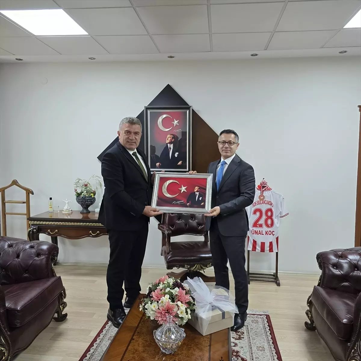 Başkan Sıbıç, ilk olarak Bulancak’tan Manisa’nın Soma ilçesine tayin olan Kaymakam Ünal Koç ile bir araya geldi.