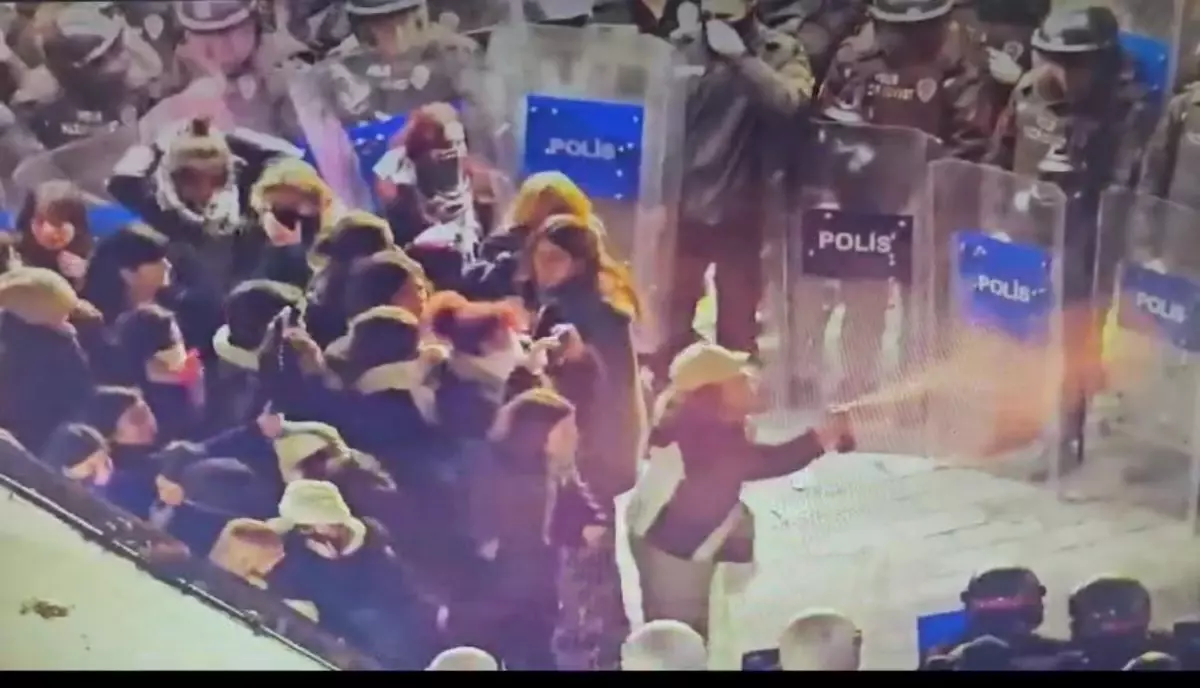 Eylemcilerin polise biber gazı sıktığı anlar kamerada