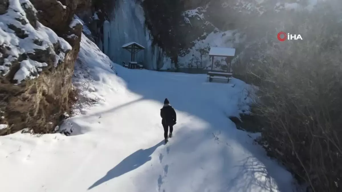 Bayburt’ta Sırakayalar Şelalesi buz tuttu