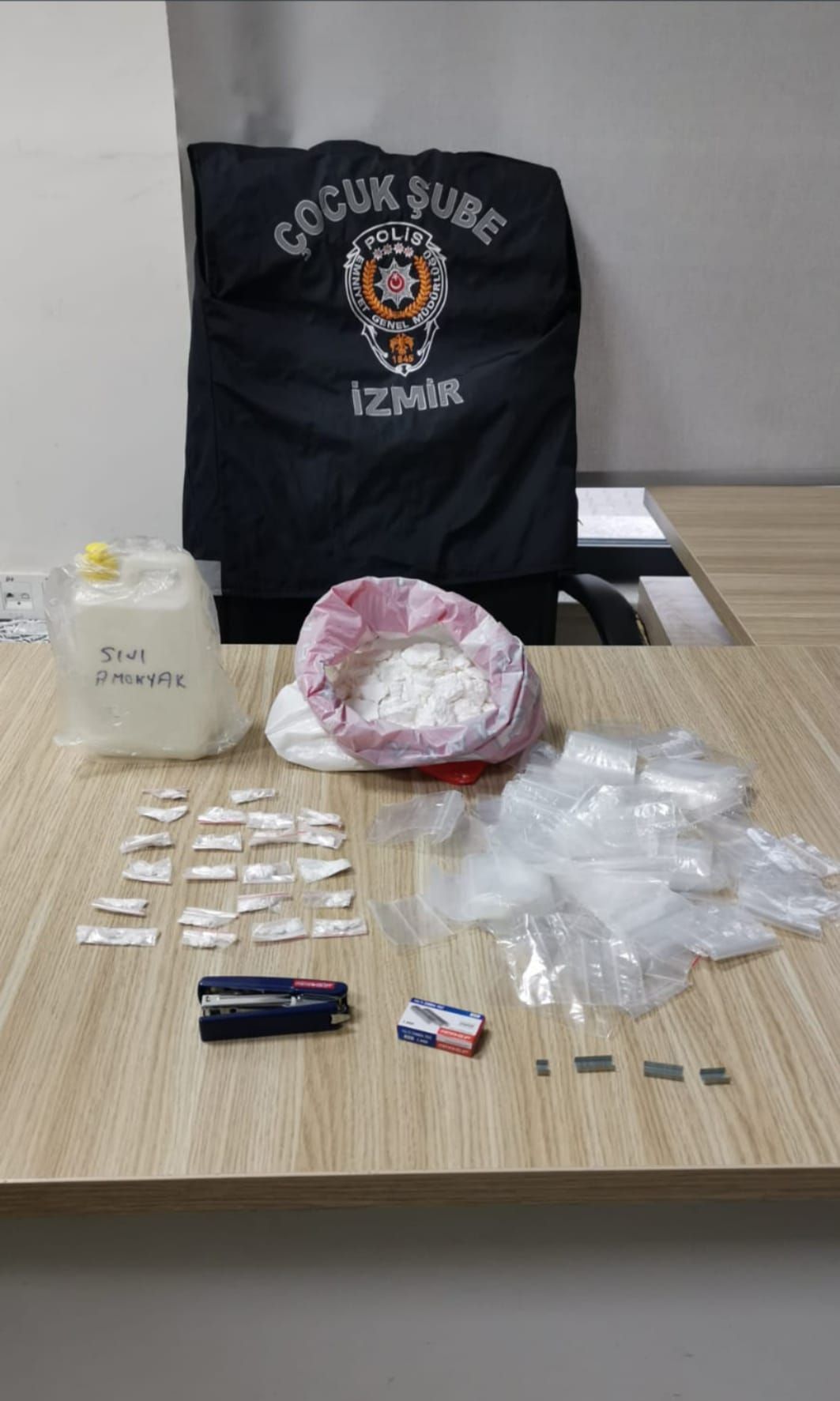 📌 Ayrıca 1 adet zımba, 1 kutu zımba teli ve çok sayıda küçük naylon poşet ele geçirilmiştir.