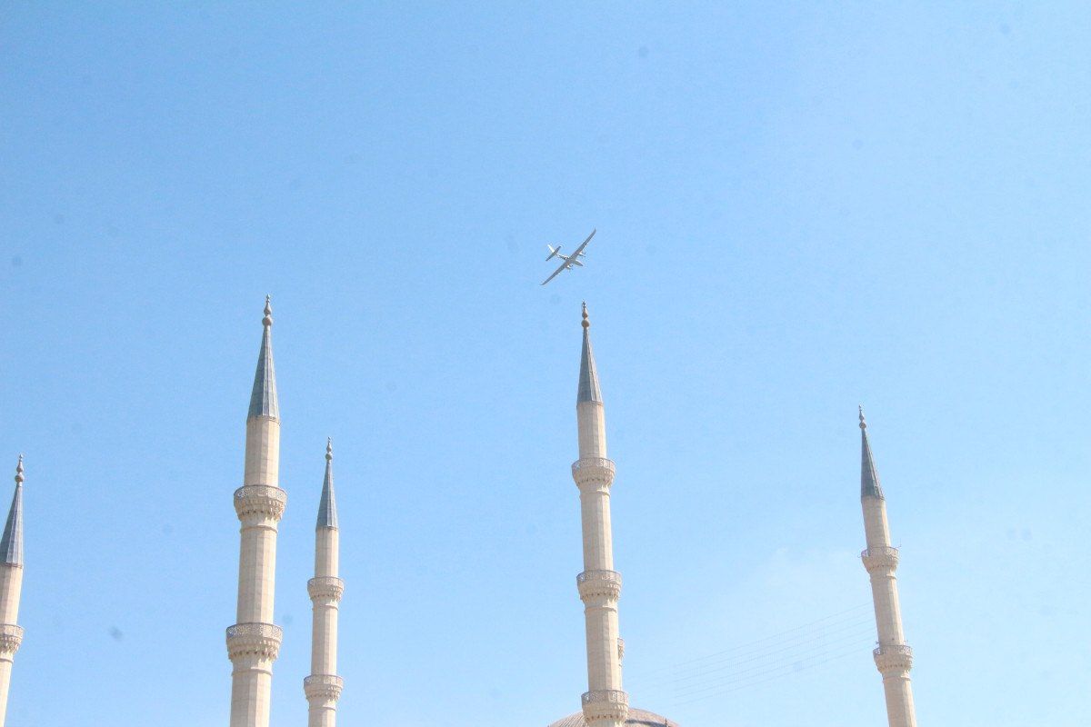 Mersin Susanoğlu Sahili’nden kalkan Bayraktar Akıncı TİHA, Sabancı Merkez Camisi üzerinde tur attı.