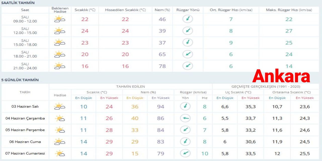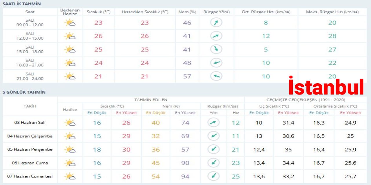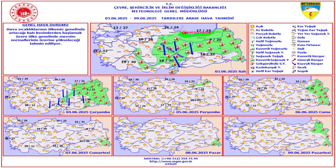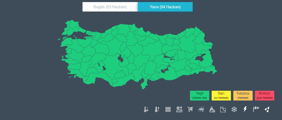 Meteoroloji Genel Müdürlüğü, 3 Haziran Salı gününe ilişkin hava durumu raporunu yayımladı.