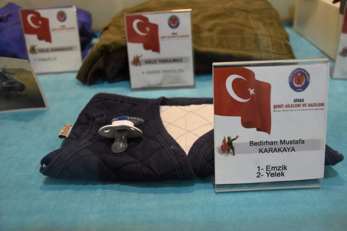 HAKKARİ Yüksekova’da babasını birliğinde ziyaret edip otomobille dönerlerken PKK’lı teröristlerce yola tuzaklanan patlayıcının infilak etmesi sonucu annesi Nurcan Karakaya (25) ile birlikte şehit olan 10 aylık Bedirhan Mustafa bebeğin olay öncesi giydiği yeleği ve emziği Sivas Şehit Aileleri ve Gazileri Sosyal Yardımlaşma ve Dayanışma Derneği’ndeki müzede sergileniyor. Dernek Başkanı Fatih Deveci, “Genci, yaşlısı, öğrencisi kim gelirse bize sorudukları ilk soru; ‘Bebekten şehit olur mu?’ Biz de onlara ‘karşımızda ki alçak bir terör örgütü, bunlar için genç, yaşlı, çocuk, bebek, asker, polis ya da basın mensubu fark etmiyor’ diyoruz” dedi.
