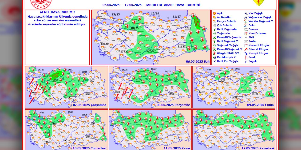 Meteoroloji GM, bugün hava sıcaklığında önemli bir değişikliğin olmayacağını ancak yurdun batı kesimlerinde mevsim normallerinin üzerinde, diğer yerlerde mevsim normalleri civarında seyredeceğini açıkladı. Yazın iyide iyiye kendisini göstereceği sıcaklık değişimini tarihi ile açıklayan meteoroloji güzel önce kötü sonra iyi haberi verdi.