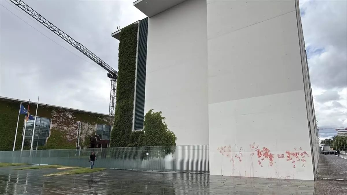 Almanya’nın başkenti Berlin’deki Filistin destekçileri, Gazze’deki soykırıma dikkati çekmek ve Almanya’nın İsrail’e verdiği askeri desteği protesto etmek için Başbakanlık binasının ön cephesine kırmızı boya sürdü.