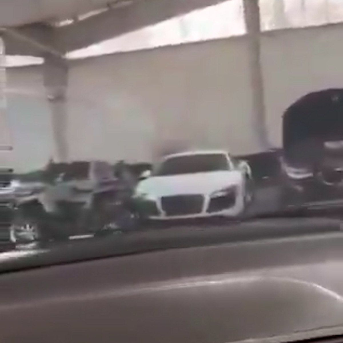 Ferrari, Audi, Mercedes ve çok sayıda lüks marka araçların sıra sıra dizildiği garaj böyle görüntülendi.