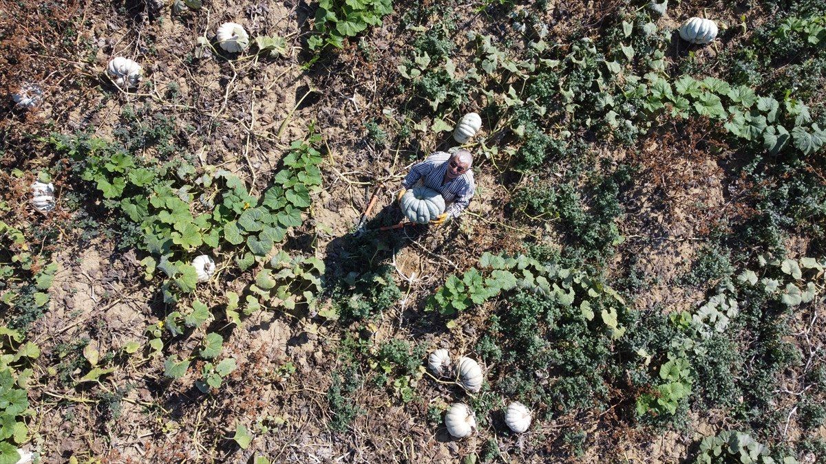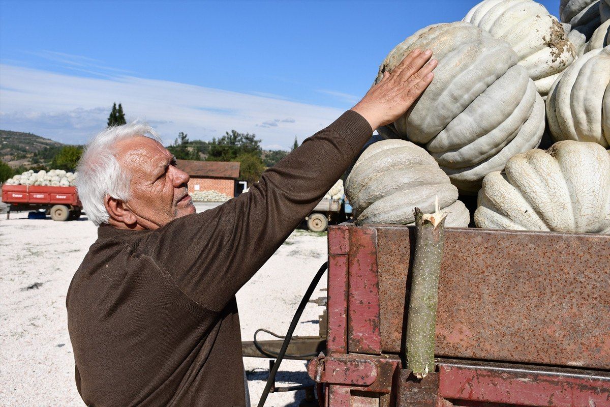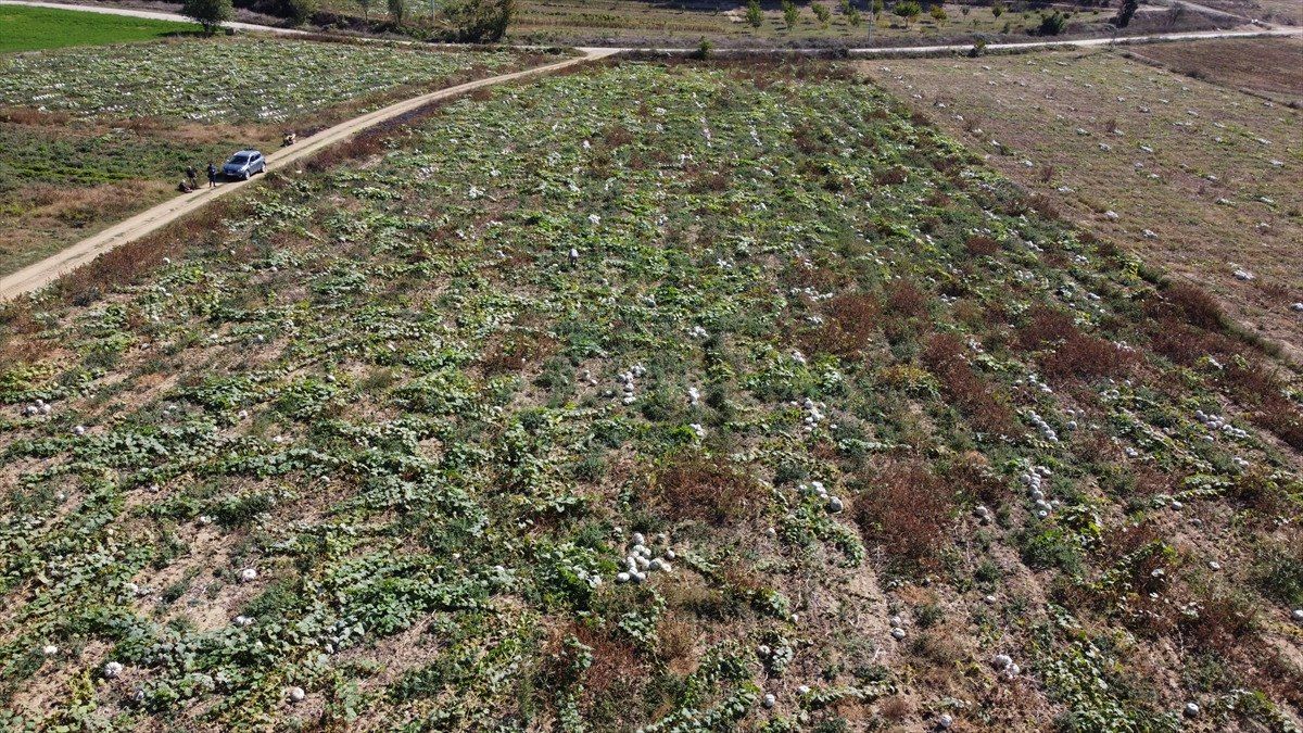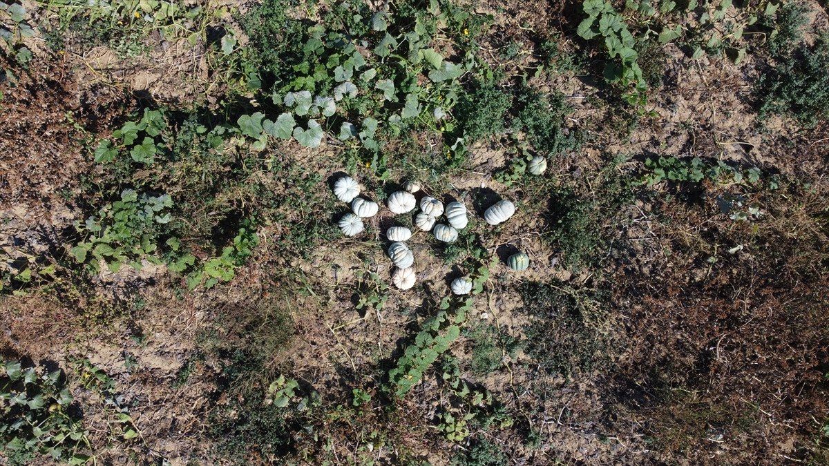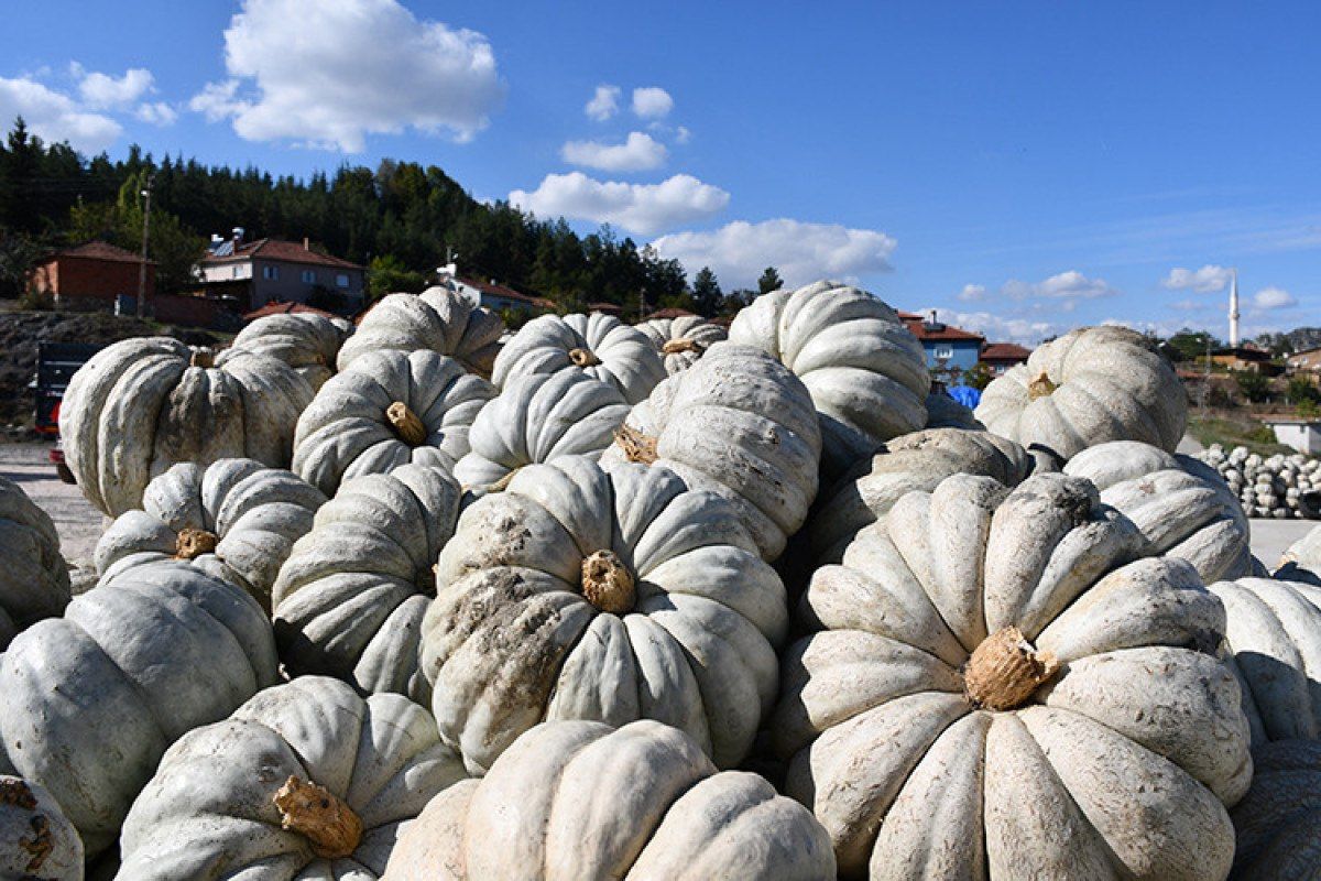 Bilecik merkeze bağlı Kızıldamlar köyünde yetiştirilen ve yaklaşık 1 yıl raf ömrü bulunan kestane kabağında hasat mesaisi sürüyor.