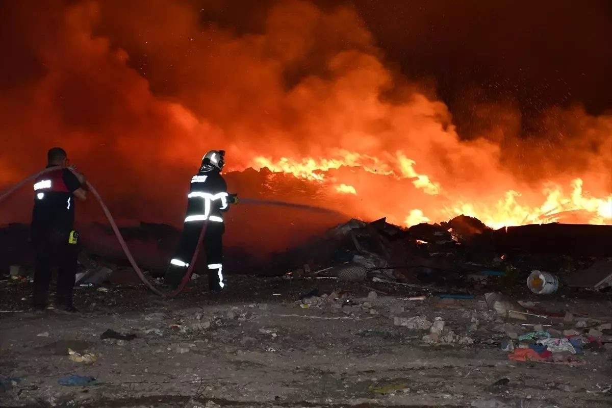 Soğutma çalışmalarının sürdüğü bölgede yangının çıkış sebebi araştırılıyor.