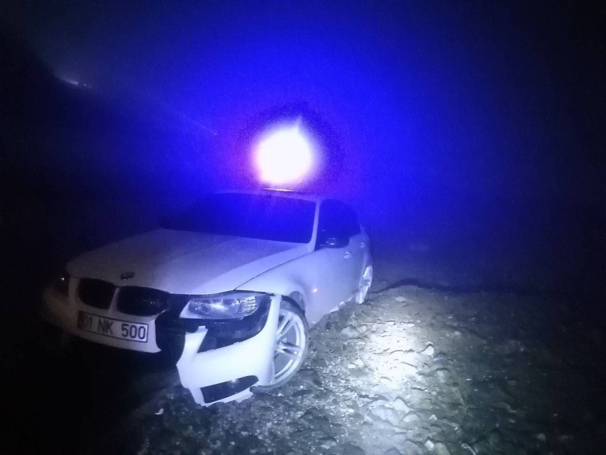 Kontrolden çıkan otomobil, otoyolda sürüklendikten sonra yolun sol tarafında bulunan yağmur kanalına çarparak durdu.