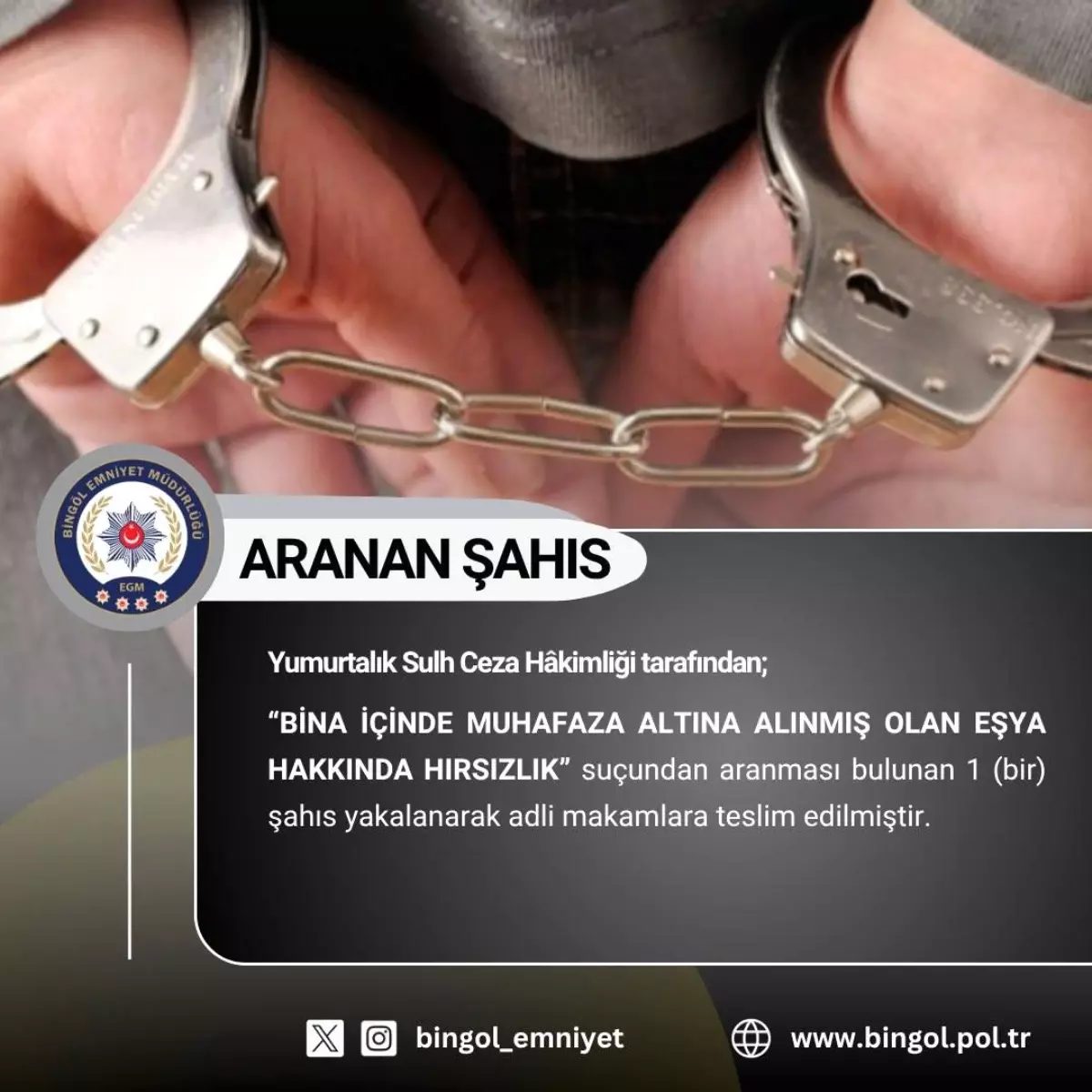 Bingöl’de polis ekipleri tarafından yapılan çalışmada, çeşitli suçlardan aranan 4 şüpheli yakalandı.