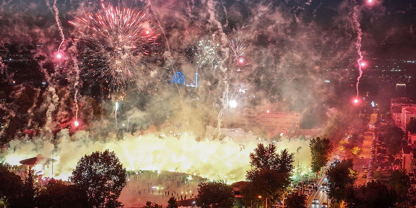 Konuşmaların ardından burada saatin 21.16’yı göstermesiyle binlerce meşale yakılıp, havai fişek gösterisi yapıldı.