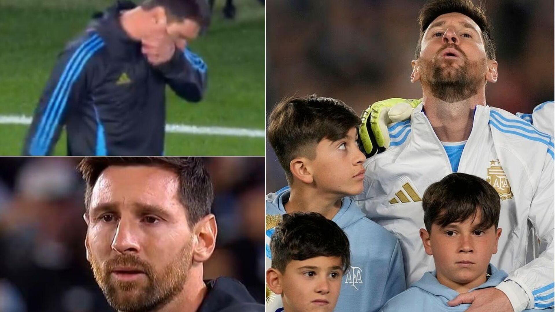 Isınma sırasında tribünlerden yükselen tezahüratlar eşliğinde gözyaşlarını tutamayan Messi’yi, tribünde ailesi izledi. Daha sonra üç oğlu Thiago, Mateo ve Ciro ile birlikte sahaya çıktı, milli marşta yer aldı.
