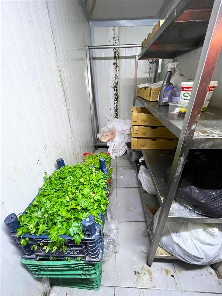 İncelemelerde, servise sunulmak üzere hazırlanan ürünler arasında küflenmiş, kokmuş ve bozulmuş meze, et ve et ürünlerinin bulunduğu belirlendi.