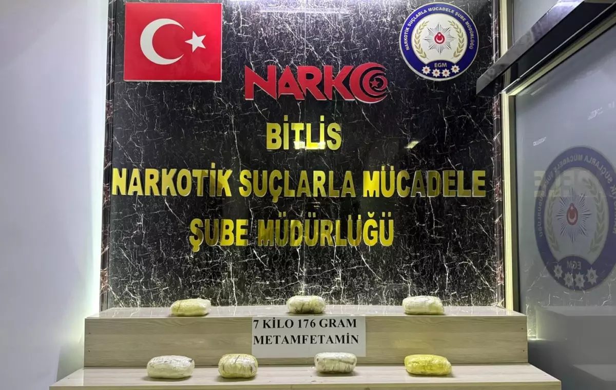 Bitlis Emniyet Müdürlüğünce yapılan çalışmada, bir araçta zulalanmış 7 kilo 176 gram metamfetamin ele geçirildi.