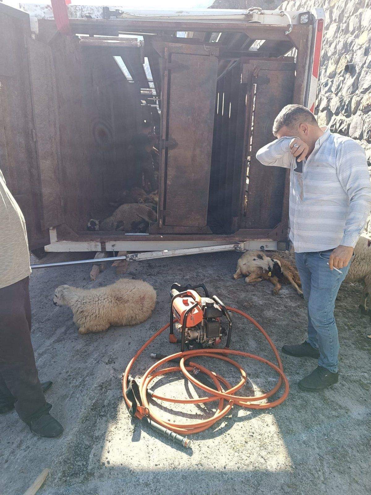 Bitlis’te devrilen tırdaki 100 küçükbaş öldü