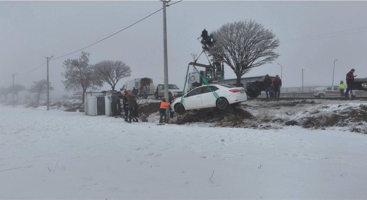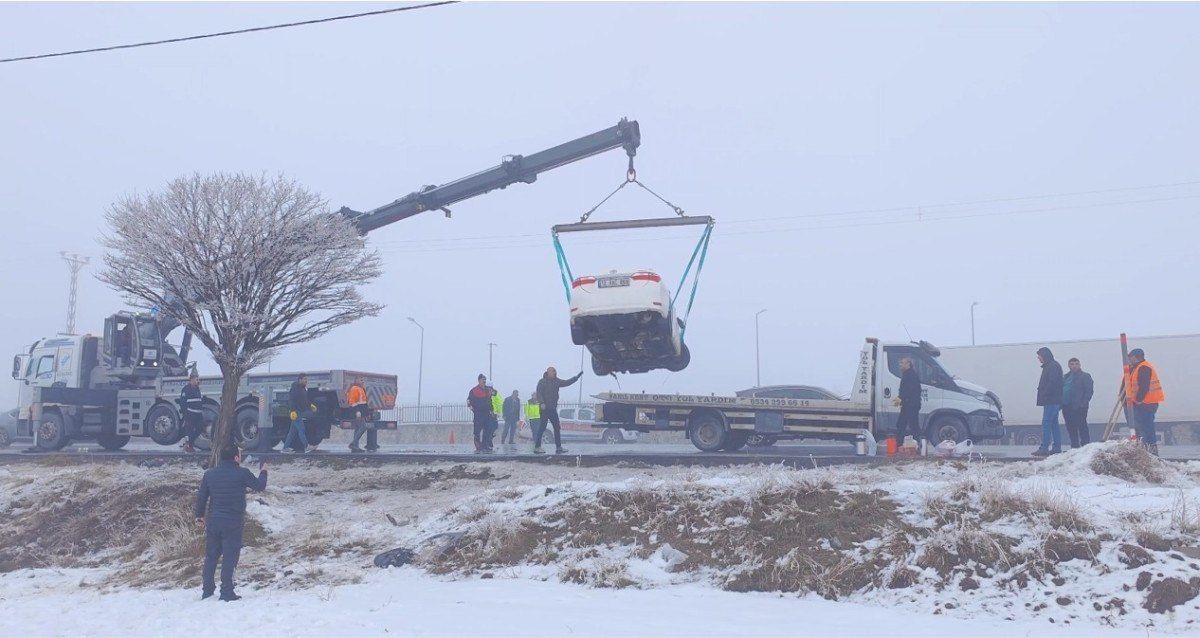 Yol kenarına savrulan araçlar vinçler yardımıyla tek tek bölgeden alınmaya başladı.