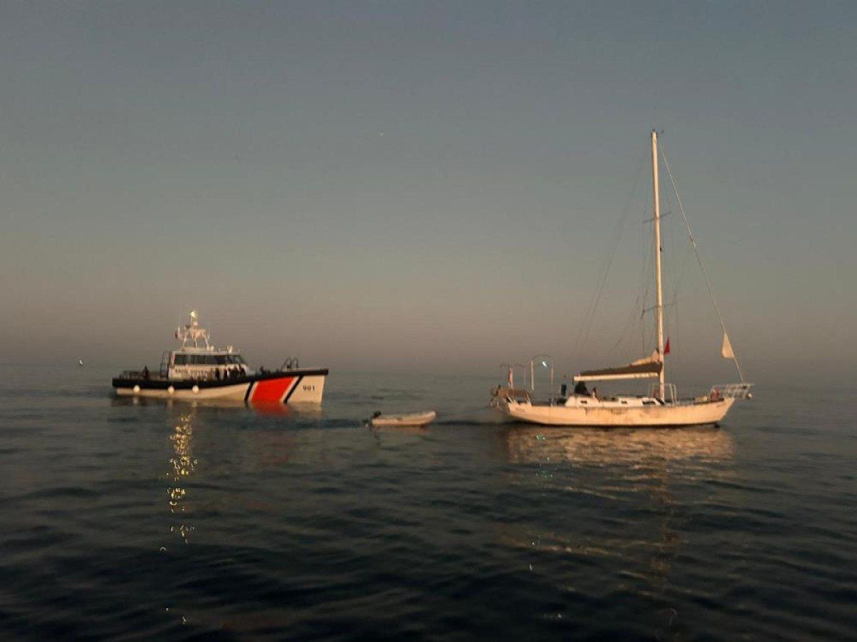 Sahil Güvenlik Botları bölgeye hareket ederken, İtalya rotası üzerinde bulunan tekne durduruldu.