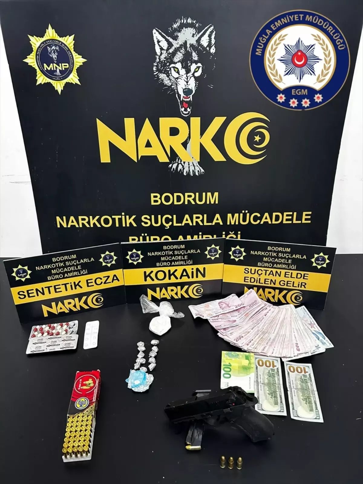Yapılan aramalarda, farklı miktarlarda uyuşturucu, ruhsatsız tabanca ile suçtan elde edildiği değerlendirilen bir miktar döviz ile 38 bin 200 lira ele geçirildi.