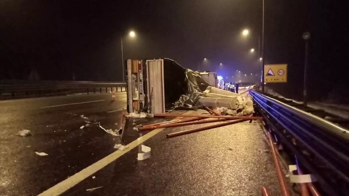 Anadolu Otoyolu'nda devrilen tır nedeniyle bir şerit kapandı, trafik normale döndü.