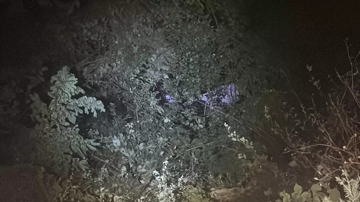 Kamyonetiyle birlikte uçuruma yuvarlanan sürücü ağaçlık alana takıldı, araç ise yaklaşık 70 metre aşağıda durabildi.