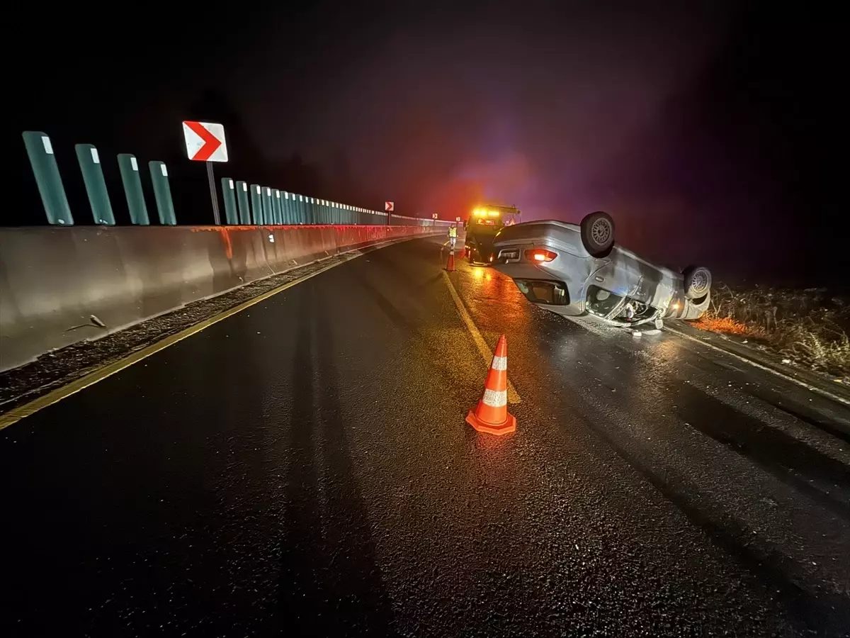 D-100 kara yolunda devrilen otomobildeki 3 kişi yaralandı, trafik normale döndü.