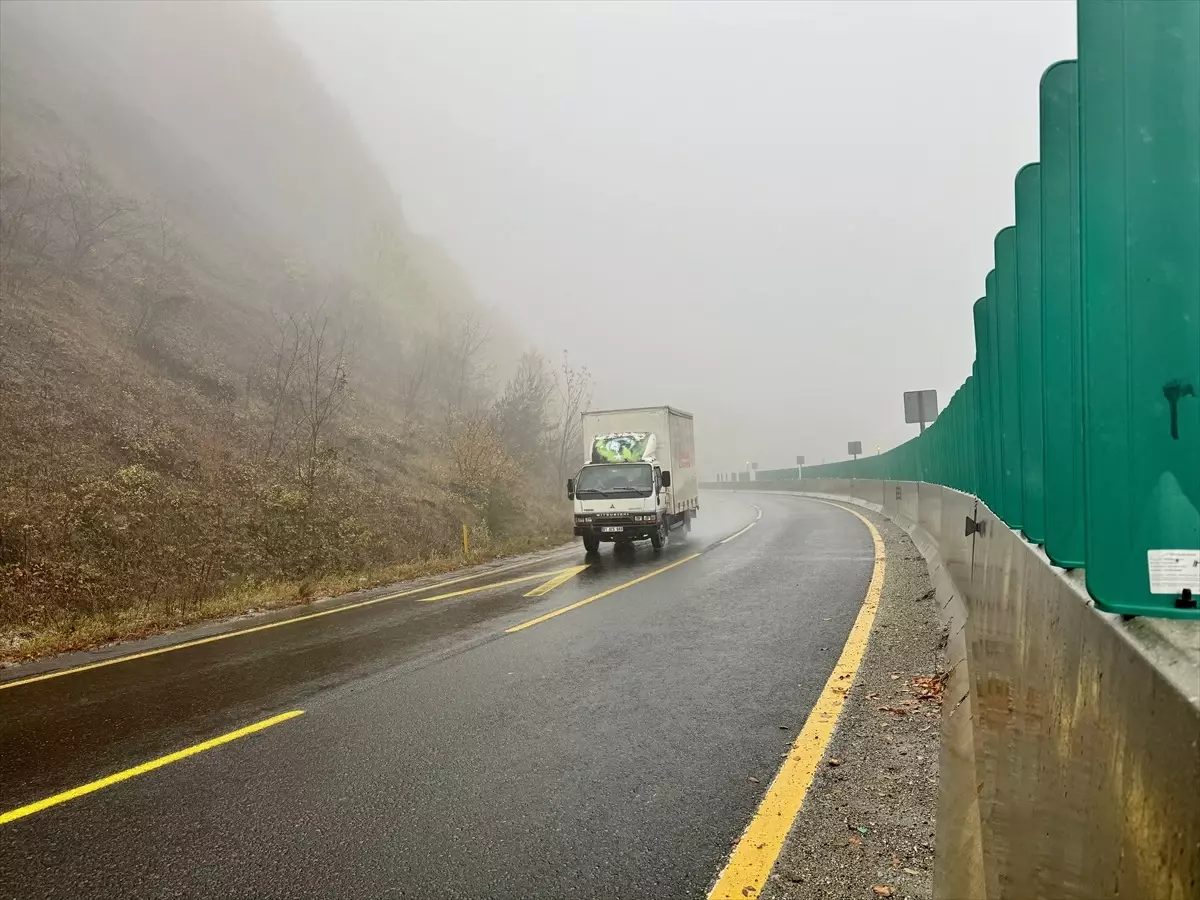 D-100 kara yolunun Bolu Dağı geçinde sis, görüş mesafesini düşürdü.