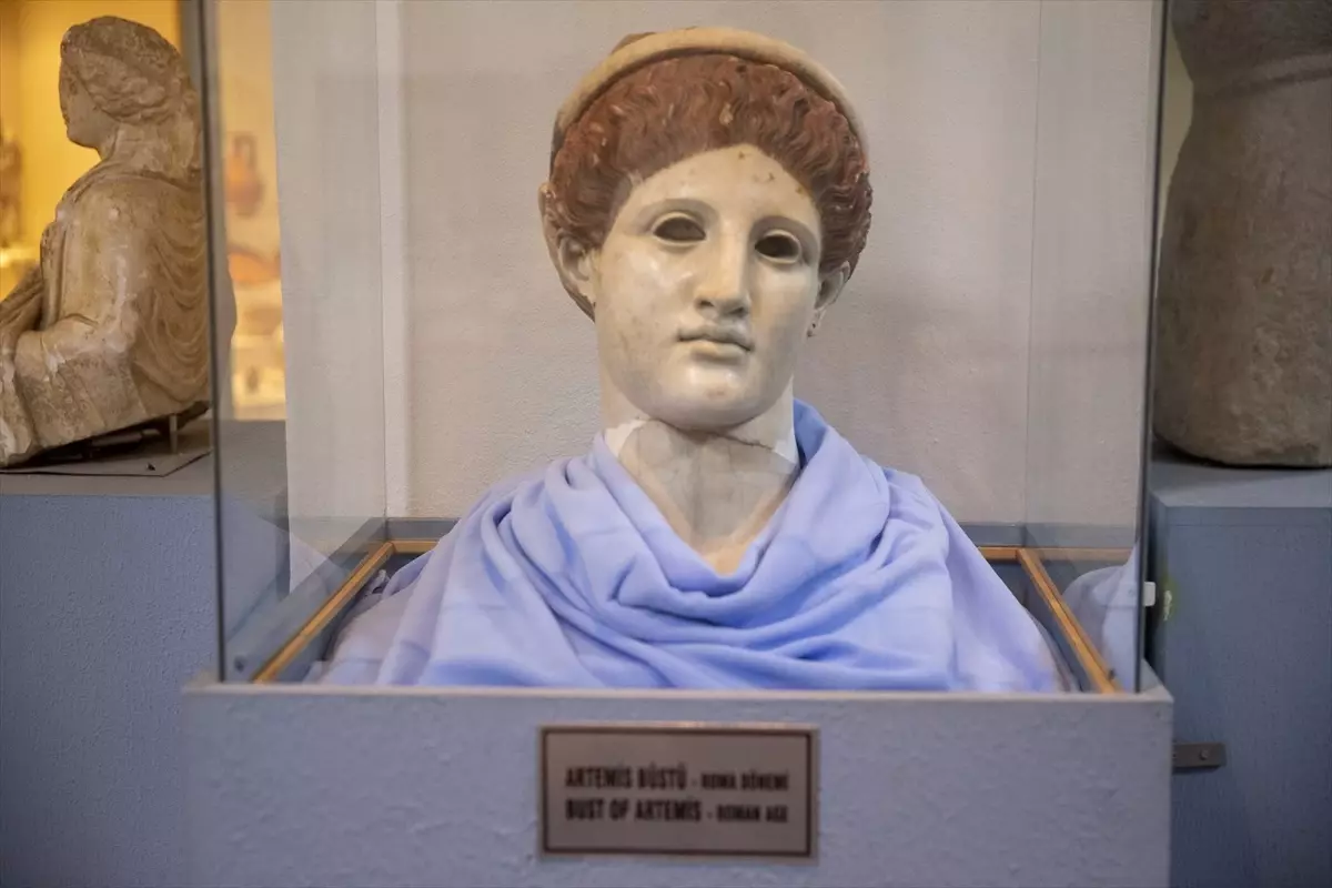 Akpınar Mahallesi’nde 1970’li yıllarda inşaat çalışması esnasında bulunan ve çalışmalarla Yunan tanrıçası “Artemis”e ait olduğu belirlenen yaklaşık 2 bin yıllık büst, üzerindeki orijinal boyasıyla bugüne kadar ulaşmasıyla dikkati çekiyor.
