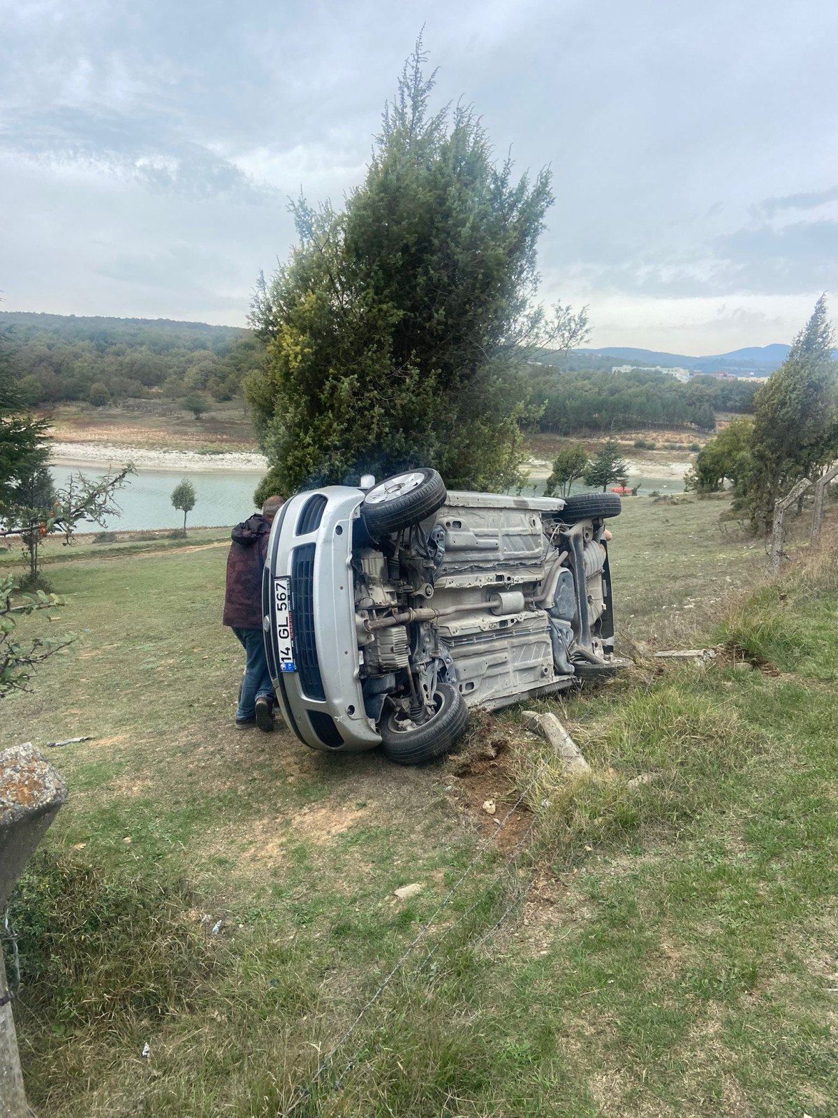 Bolu’da Gölköy Baraj Göleti’nin etrafında turlayan S.S. yönetimindeki otomobil, sürücüsünün direksiyon hakimiyetini kaybetmesiyle kontrolden çıktı.
