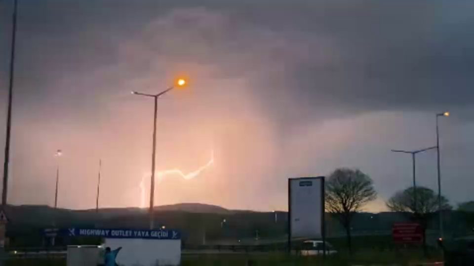 Gök gürültülü yağmurla birlikte arka arkaya çakan şimşekler, gökyüzünü aydınlattı.