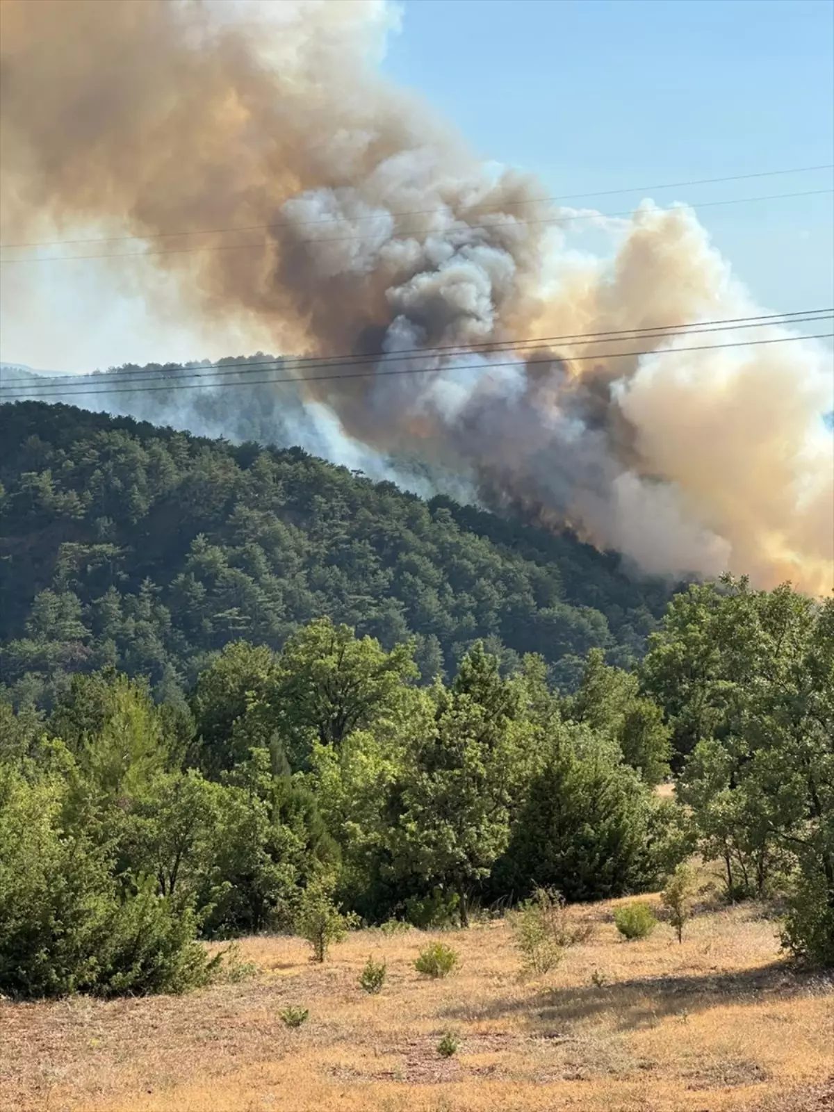 İlçeye bağlı Karaardıç köyü yakınlarındaki ormanlık alanda henüz bilinmeyen nedenle yangın çıktı.