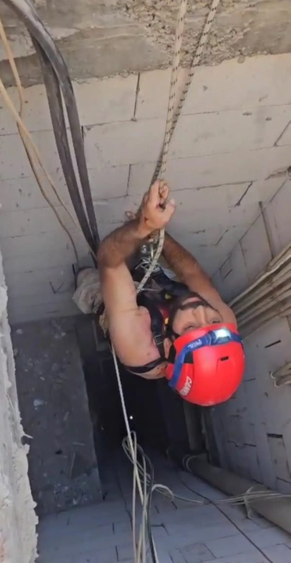 ADANA’da, apartmanda boya yaparken havalandırma boşluğuna düşüp yaralanan Mustafa Ildır (29), itfaiye ekipleri tarafından halatla kurtarıldı.