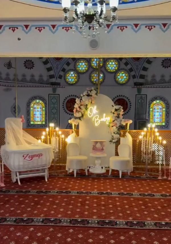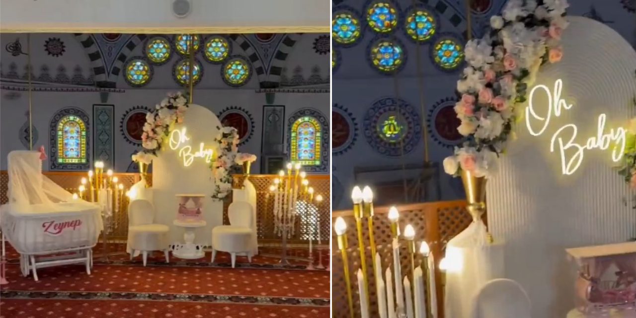 Bir organizasyon firmasının Kocaeli’nin Kartepe ilçesinde bulunan bir camide, “baby shower partisi” düzenlemesine tepki yağdı. Cami içerisindeki masa süslemeleri, balonlar ve hediyeliklerle yapılan kutlamanın görüntüleri sosyal medyada eleştiri oklarının hedefi olurken İl Müftülüğü’nden açıklama geldi.