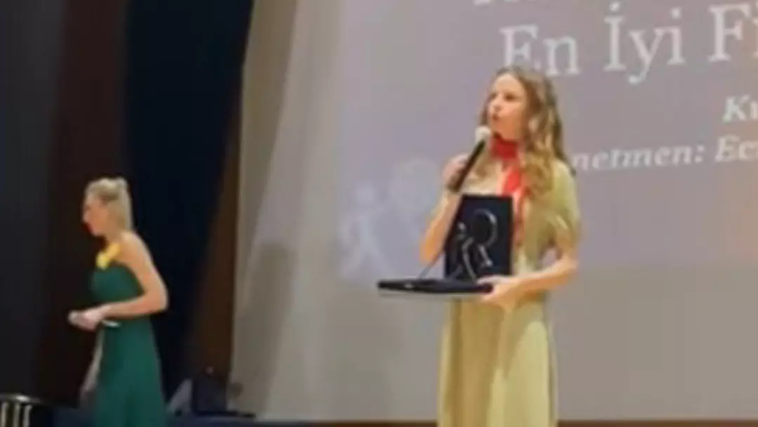 Festivalde ‘En İyi Kurmaca Film’ ödülünü kazanan “Kurtlar” adlı yapımın 24 yaşındaki yönetmeni Ecre Begüm Bayrak, sahnede yaptığı konuşmada tutuklu öğrencileri ve Grup Yorum’u andı.
