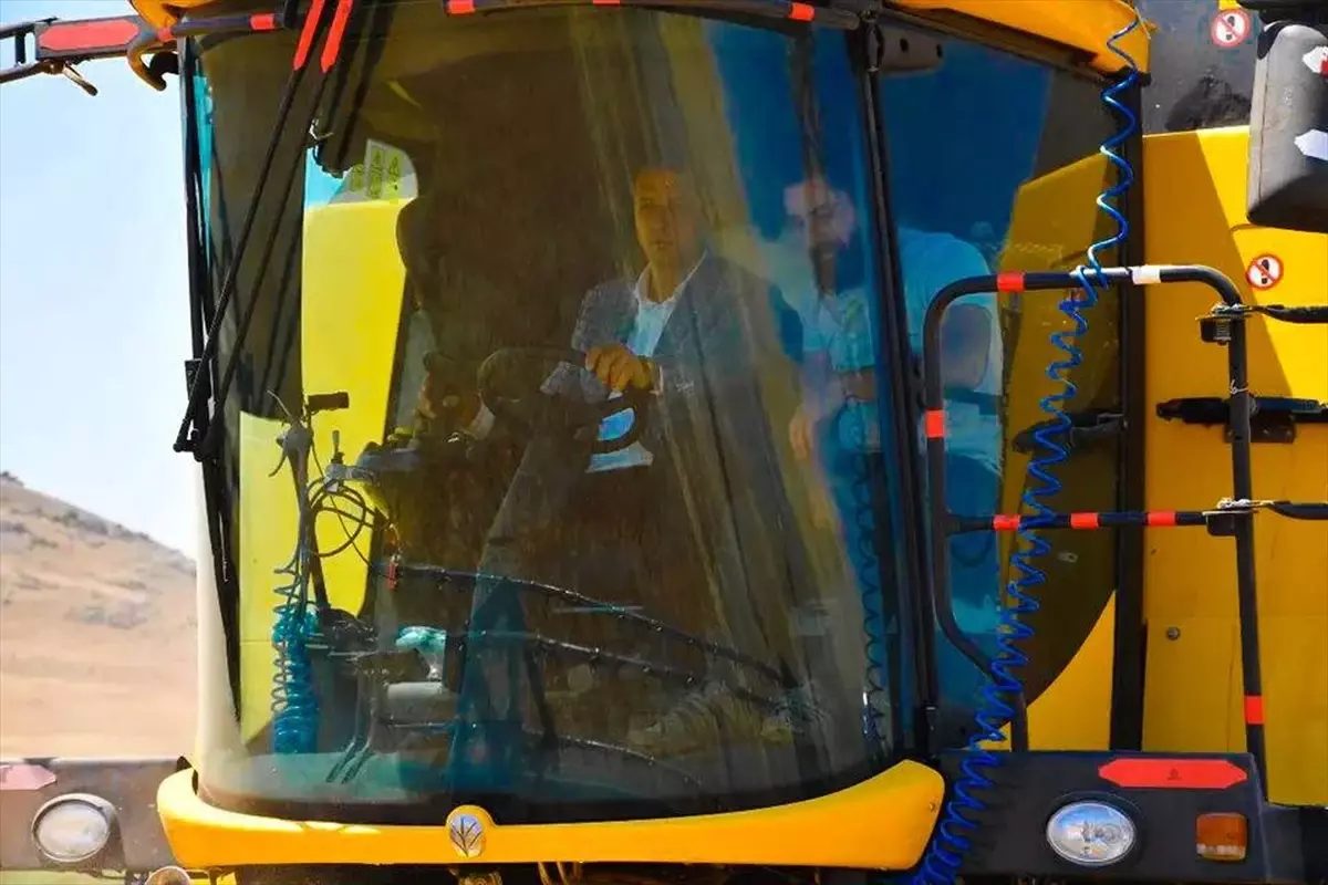 İlçe Müftüsü İsa Yaykın tarafından yapılan duanın ardından, biçerdöverin direksiyonuna geçen Canpolat, ilk buğday hasadını gerçekleştirdi.