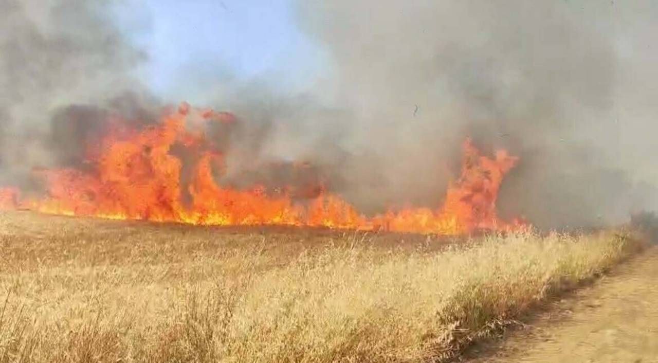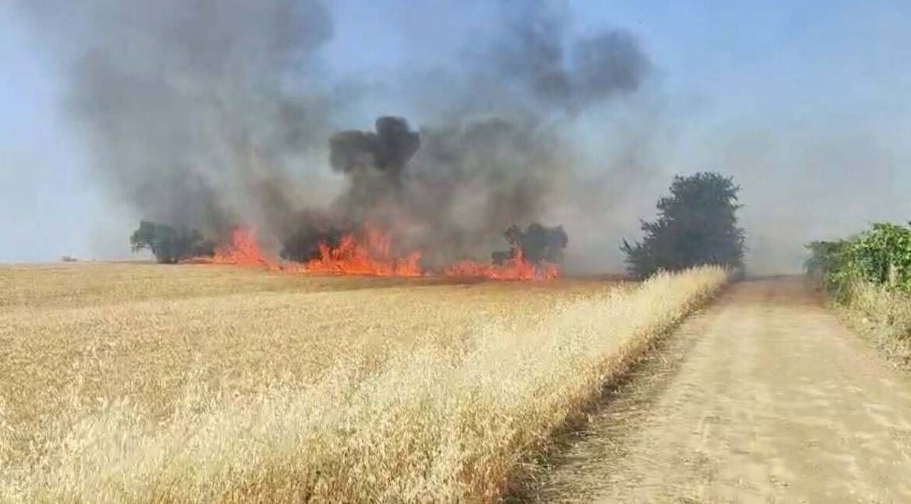 Manisa’nın Turgutlu ilçesinde buğday tarlasında çıkan yangın devam ediyor.