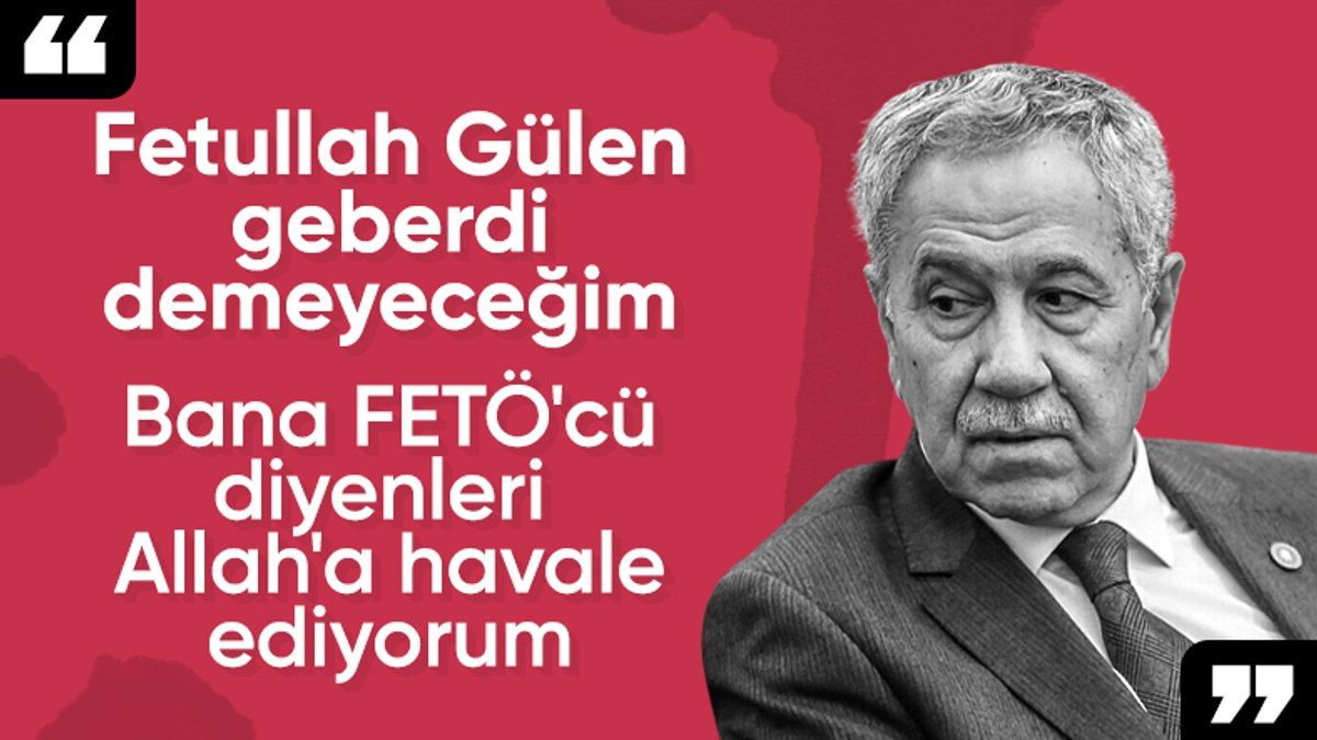 Kendisine ‘FETÖ’cü’ diyenleri Allah’a havale ettiğini belirten Arınç, “Ben o şekilde konuşan bir insan değilim, o yüzden de bugün ‘geberdi’ ya da ‘leşi şöyle olsun böyle olsun’ gibi cümleler de kurmayacağım. Ben onun hakkındaki kanaatimi 15 Temmuz’u ‘hain darbe girişimi’ olarak nitelendirerek söyledim. FETÖ’nün 15 Temmuz ile bağlantısını ben kabul ediyorum zaten.” dedi.