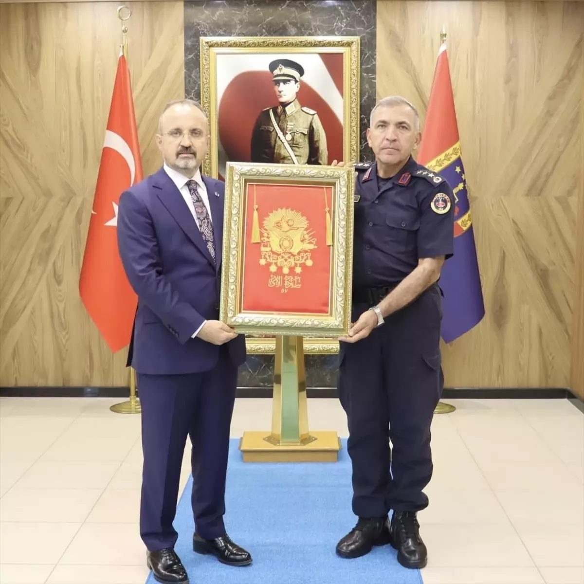 Bakan Yardımcısı Turan, İl Jandarma Komutanı Kıdemli Albay Cemalettin Akyüz’e makamında ziyarette bulundu.