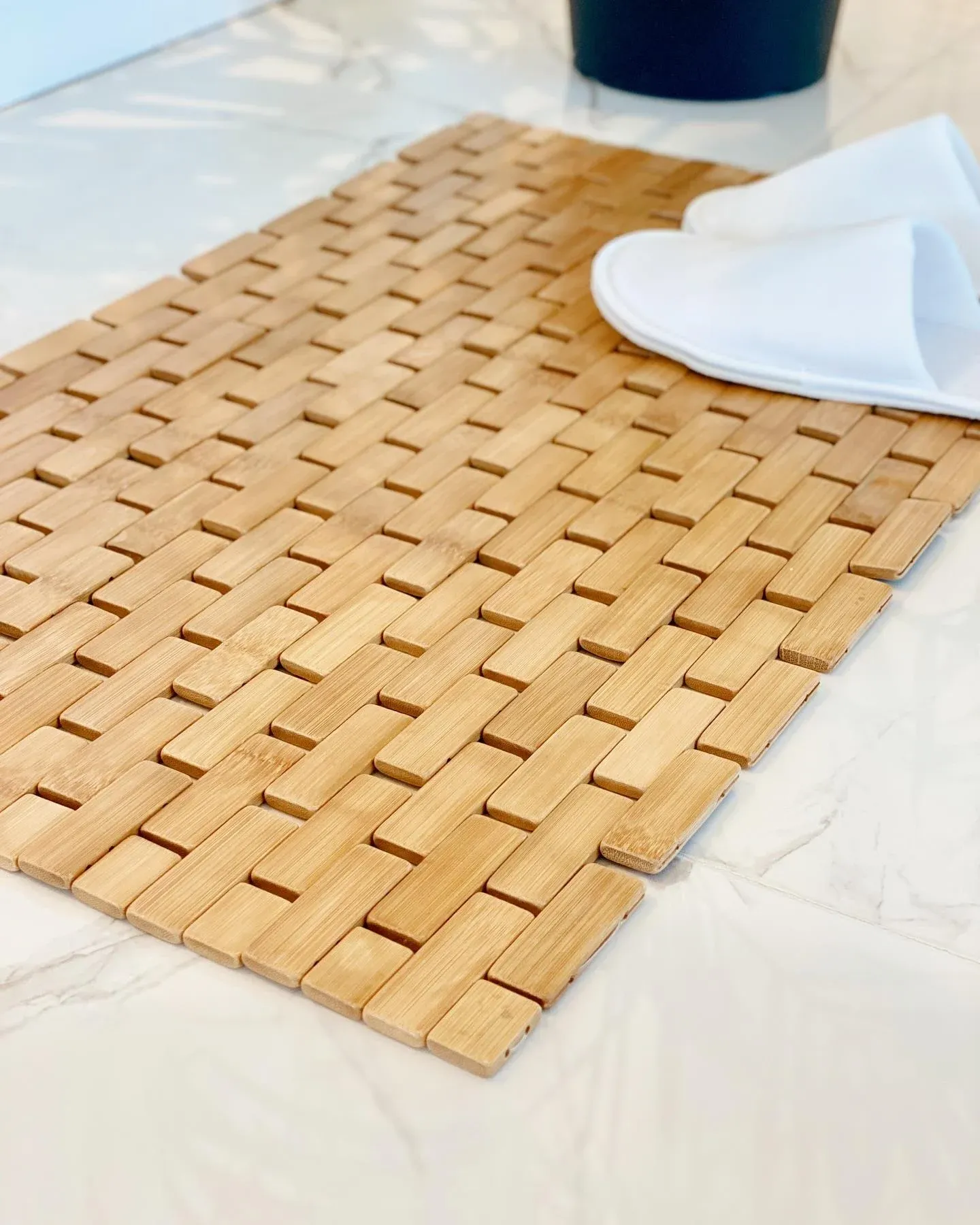 Sadece bambu banyo paspası kullanmanızı öneriyor çünkü çok daha çabuk kuruyor ve kirleniyor. Haftada bir kez sirke ve su karışımıyla temizlemelisiniz.