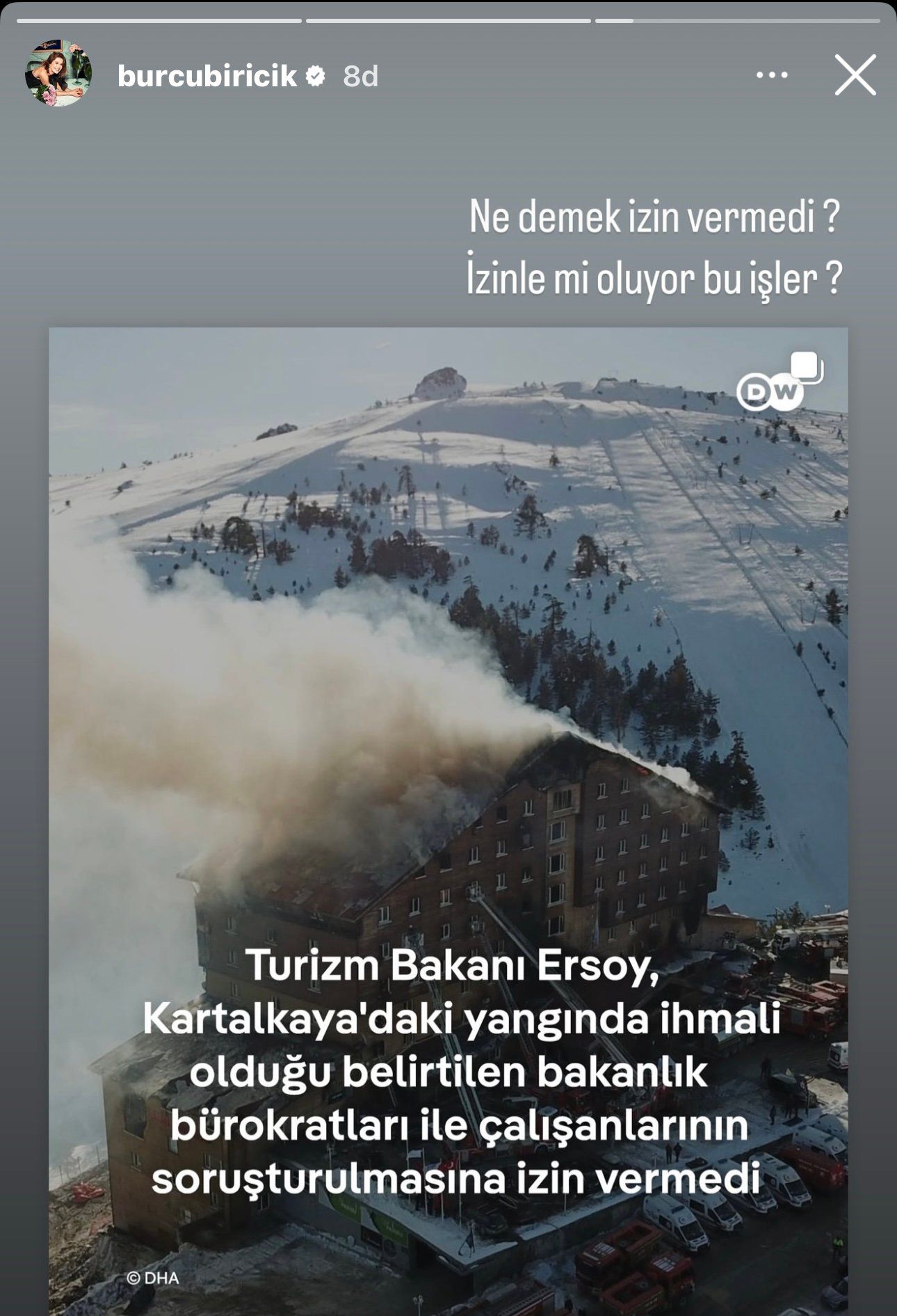 Ünlü oyuncu Burcu Biricik, bu kararın ardından Bakan Ersoy’a sert tepki gösterdi. Sosyal medya hesabından paylaşım yapan Biricik, “Ne demek izin vermedi? İzinle mi oluyor bu işler?” ifadelerini kullandı.