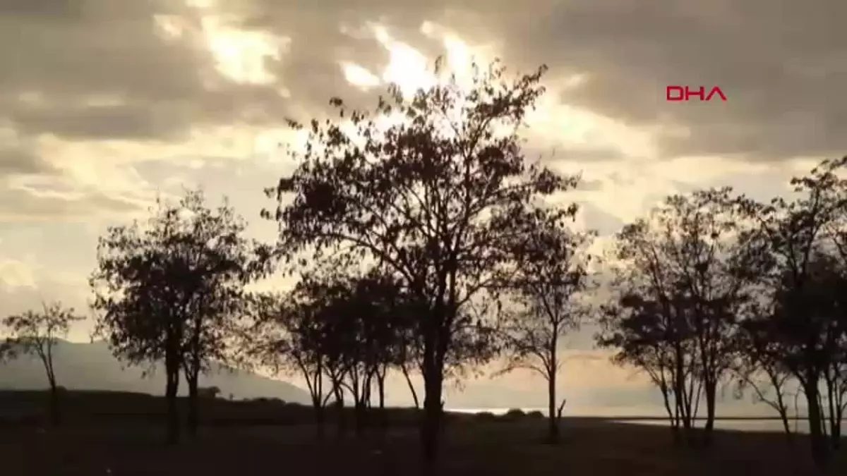 SON yıllarda suyu hızla çekilen ve kuruma tehlikesindeki Burdur Gölü’nde, gün batımında gökyüzündeki kızıllık ve güneş ışıklarının suya yansımasıyla seyirlik manzara oluştu.